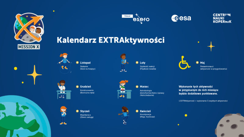 Aktywności nie muszą ograniczać się do dostępnej listy! Basen czy przejażdżka rowerem to także element treningu astronauty. Takie działania też zgłaszajcie. Od czego rozpoczniecie Waszą misję? Działania – Misja X (trainlikeanastronaut.org)