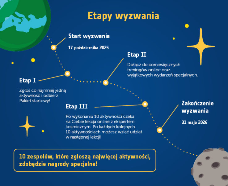 Za udział w wyzwaniu otrzymacie certyfikaty uczestnictwa oraz wyjątkową niespodziankę od ESA Education. Dodatkowo czekają na Was atrakcje od polskiej edycji wyzwania!