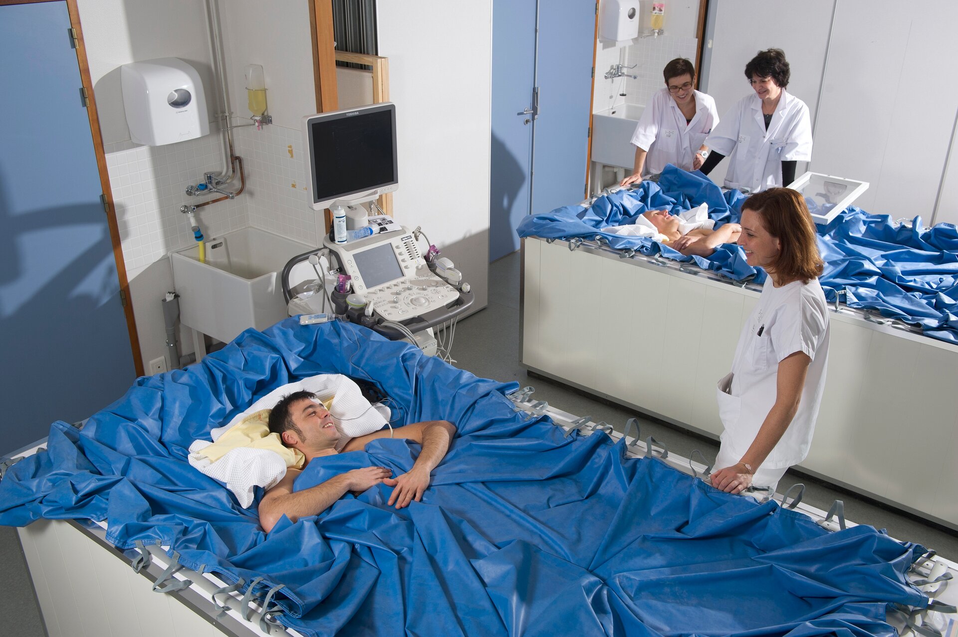 W ośrodku Medes w Tuluzie (Francja) wykorzystane do tego są tzw. „suche wanny”, w których leżało przez 5 dni 20 osób. Podobnie jak w zwykłych wannach, byli zawieszeni w wodzie, jednak nie dotykali jej.